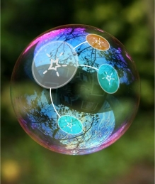 Kita coba bergerak lagi. Bagaimana kalau kita bayangkan lembaran mind-map tadi kita jadikan pembungkus sebuah bola, saya kira itu penggambaran pengetahuan yang lebih mendekati. Peta pengetahuan tidak lagi dua dimensional tapi menjadi tiga dimensional. Lebih lanjut, bola pengetahuan tersebut kita imajinasikan sebagai sebuah gelembung sabun (transparan / bening) dengan butiran pengetahuan yang saling berkaitan tergambarkan di atasnya, kita bisa melihat bahwa setiap butiran pengetahuan tidak pernah berdiri sendiri, selalu ada hal lain yang terkait (koneksi) dan melingkupi / melatar-belakanginya (konteks) – dan selalu bergerak. Melalui analogi ini, kita seharusnya bisa memahami bagaimana kita tidak pernah bisa (boleh) mengisolasi materi pembelajaran apapun dari koneksi atau konteksnya. Kalau hal tersebut kita lakukan, butir pengetahuan tersebut akan kehilangan maknanya. Selanjutnya pada saat makna pengetahuan tersebut hilang, sang pembelajarpun akan menjadi sulit memahaminya.